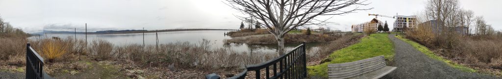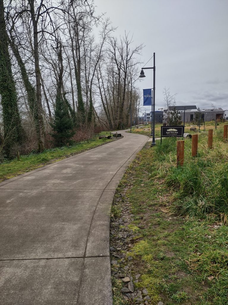 This is a site owned by the City of Battleground currently being restored with native vegetation and reforested. It mostly consists of a large open field surrounded by forest, with sections replanted with new trees. There are paths criss-crossing the site through the grass, but they might be difficult to follow, especially when the grass is tall. Exploring the site, you could easily walk 3/4 mile to a mile making a loop.